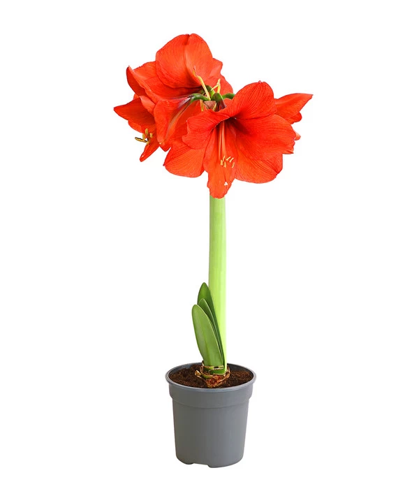 Ritterstern, Amaryllis, Hippeastrum – diese Pflanze ist unter vielen Namen bekannt. Egal welchen Sie auch bevorzugen, eins ist sicher: Dieses Blütenwunder zieht jeden in seinen Bann. Die riesigen roten Blüten, die stolz auf einem kräftigen Stängel thronen, sind eine Schau für sich und werden ein prachtvoller Blickfang auf Ihrer Fensterbank sein – und Ihnen ganz nebenbei den Winterblues vertreiben. Denn die ursprünglich aus Südamerika stammende Amaryllis ist netterweise in Blühlaune, wenn bei uns die Natur im Winterschlaf liegt und wir uns nach leuchtenden Farben sehnen. Lassen Sie gleich diese Winter-Schönheit bei sich einziehen, die Ihre festliche Raumdekoration zur Advents- und Weihnachtszeit um eine exotische Note bereichern wird.