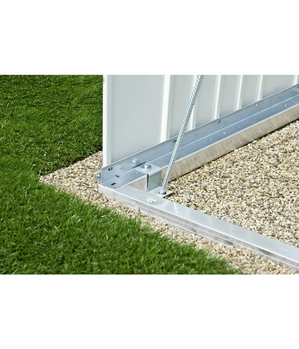 Blitzschnell und ganz ohne Fundament steht Ihr Gerätehaus von Biohort dank dieses Bodenrahmens. Er verleiht dem Häuschen für Ihre Gartengeräte die notwendige Stabilität und wird gesichert mit stabilen Bodenankern. Gerade für den Garten ideal, da dort die Böden oft uneben sind. Die mitgelieferten Eckverbindungen aus Kunststoff lassen sich leicht montieren und das Haus steht sicher und gut ausgerichtet. Hinweis: Der Bodenrahmen aus stabilem Aluminium ist zur optimalen Verlegung der Alu-Bodenplatte erforderlich. Weitere Artikel für den Garten sowie hochwertige Gartengeräte erhalten Sie im Dehner Garten-Center oder im Online-Shop.
