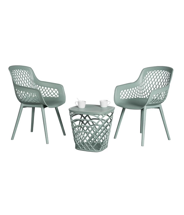Ihr Balkon ist Ihre schönste Flucht aus dem Alltag, unter Ihrem persönlichen Stückchen Himmel, zwischen Ihren liebevoll bepflanzten Kübeln und Kästen. Ein Ort, den Sie am besten genießen können, wenn Sie dort eine schöne Sitzgelegenheit erwartet: ein Dehner Balkonset ‚Chelsea‘ zum Beispiel. Diese stylische Kombination aus zwei Stühlen und einem Tisch lädt zum Chillen, Chatten und Genießen ein. Ganz dezent uni gehalten bieten die Stühle mit den ergonomisch geformten Sitzschalen und der trendigen Gitteroptik ein wunderbares Sitzerlebnis, das auch im Sommer luftig bleibt. Ihren Kaffee, die selbstgemachte Limo und natürlich die Snacks stehen auf dem perfekt passenden, kleinen Tisch, der die Gitteroptik aufgreift und sich mit einem Handgriff an die gewünschte Position stellen lässt. Mit anderen Worten: Das Dehner Balkonset ‚Chelsea‘ ist die perfekte Wahl, wenn es um eine gemütliche Sitzgruppe geht, die zudem noch den aktuellen Trends entspricht!
