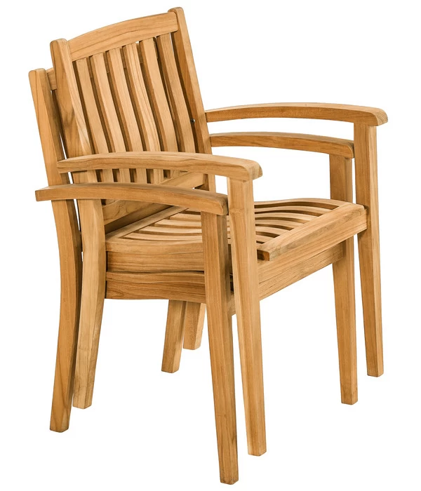 Teakholz wird oft als der Diamant unter den Edelhölzern bezeichnet. In Europa wird das wegen des hohen Anteils an natürlichen Ölen extrem harte, widerstandsfähige Holz schon seit Jahrhunderten für den Bau hochwertiger Gartenmöbel eingesetzt, die traditionell ein fester Bestandteil der berühmten englischen Gartenkunst sind. In die Gruppe dieser edlen Möbel reiht sich der Dehner Stapelsessel Havanna ein und wird auch in Ihrem Outdoor-Ambiente ein bewundertes Schmuckstück sein. Für alle, die bei Teakholz auch an die Ökologie denken: Selbstverständlich stammt das Holz für diesen Teakstuhl aus nachhaltigem Plantagenanbau, wie Ihnen die FSC®-Zertifizierung beweist.