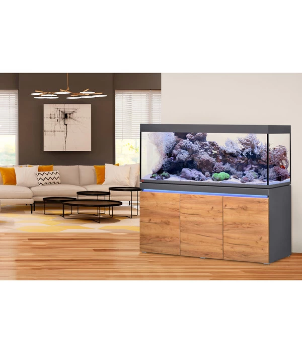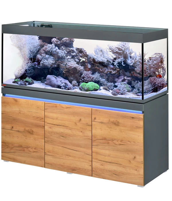 Mit einem enormen Fassungsvermögen von 530 Litern zählt die hochwertige Eheim Aquarium Kombination Incpiria reef 530 mit Weißglas-Scheiben zu den größten Aquarien der breitgefächerten Incpiria-Serie. So räumt Ihnen dieses bewundernswerte Aquarium-Komplettset extra viel Freiraum für die Gestaltung Ihrer ganz persönlichen Aquarienwelt ein. Als offenes Meerwasseraquarium präsentiert sich die hochwertige Eheim Aquarium Kombinaton Incpiria reef 530 zudem ohne obere Abdeckung. Für Ihre Aquariumsbewohner bedeutet dies authentische Wohlfühlatmosphäre in riffähnlicher Unterwasserlandschaft. Der Unterschrank verfügt über ein besonderes Highlight, eine atmosphärische LED-Beleuchtung. Sie lässt sich einfach per Fernbedienung steuern und dimmen. Dafür stehen Ihnen schier unglaubliche 640.000 Farben zur Verfügung. Ihre gewählte Leuchtfarbe dürfte auf diese Weise perfekt mit dem Dekor der Eheim Meerwasseraquarium Kombinaton Incpiria reef 430 und Ihrer Einrichtung harmonieren.
