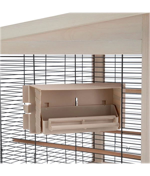 Damit sich Ihre exotischen Vögel rundum wohl bei Ihnen fühlen, sollten Sie ihnen eine schöne Behausung bieten. Die Vogelvoliere Wilma von ferplast ist weit mehr als nur ein Käfig. Im geräumigen Inneren haben Ihre Exoten reichlich Platz zum Klettern, Herumfliegen und Spielen. Bei Hunger oder Durst können Ihre gefiederten Freunde die integrierten Trinkflaschen und Futternäpfe anfliegen, die sich drehen und bequem von außen befüllen lassen.