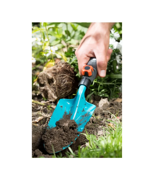 Nicht jede Gartenkelle ist wirklich dazu gemacht, im Garten harte Arbeit zu verrichten. Oft blättert schon nach wenigen Malen der Benutzung die Beschichtung ab, der Griff fängt an zu brechen oder der Stahl der Kelle verbiegt sich. Nicht so mit der GARDENA combisystem-Blumenkelle, mit ihr können Sie alle Aufgaben im Garten entspannt angehen. Falls Sie einmal nicht auf eine Handkelle angewiesen sind, dann nutzen Sie die Gelegenheit und verlängern Sie die GARDENA combisystem-Blumenkelle um Ihren Rücken zu entlasten und aus einem angenehmen Stand heraus die Arbeiten in Ihrem Garten anzugehen.