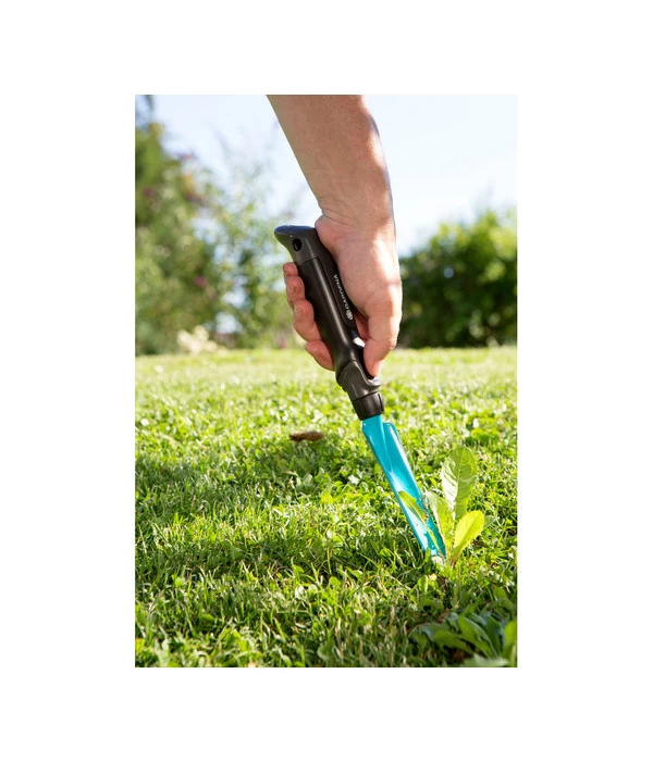 So klein und kompakt wie er daherkommt, so effizient lassen sich mit dem Unkrautstecher von GARDENA Löwenzahn und Co. beseitigen. Ist die entsprechende Pflanze erst einmal lokalisiert, setzen Sie die Klinge punktgenau an und stechen diese in den Boden. Mit der integrierten Daumenkufe können Sie den nötigen Druck aufbauen und die rutschfeste Oberfläche des Griffs sorgt auch beim Herausziehen des GARDENA Unkrautstechers für sicheren Halt. So wird Verletzungen vorgebeugt. Erstrahlen Rasenflächen und Beete wieder im gewünschten unkrautfreien Zustand, lässt sich das Werkzeug platzsparend und ordentlich an der Aussparung aufhängen.