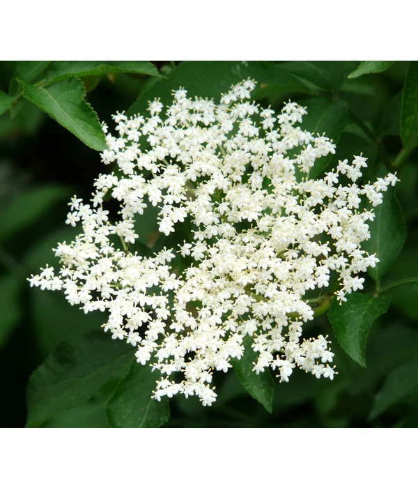 Wenn ein schon von Natur aus einzigartiges Wildgehölz von erfahrenen Gärtnern veredelt wird, entstehen so wertvolle Pflanzen wie ein Großfruchtiger Holunder ‚Haschberg‘, der Ihren Garten auf vielfältige Weise bereichern wird. Im April und Mai schenkt er Ihnen prächtige, cremeweiße Blütendolden, die weithin leuchten und ihren unverwechselbaren Duft verbreiten. Und weil die Blüte so üppig ausfällt, können Sie gerne zahlreiche Blütendolden ernten und daraus leckeren Sirup kochen oder die Dolden in Teig ausbacken und als süße Leckerei servieren. Und trotzdem werden im Herbst noch genug schwarze Beerendolden zwischen dem grünen Laub leuchten, aus denen Sie Saft und Gelee kochen oder köstlichen Likör herstellen können. Suchen Sie gleich für den Großfruchtigen Holunder ‚Haschberg‘ ein Plätzchen in Ihrem Garten und erleben Sie in den nächsten Jahren, wie dieser Großstrauch zu einem doppelt kostbaren Highlight wird!