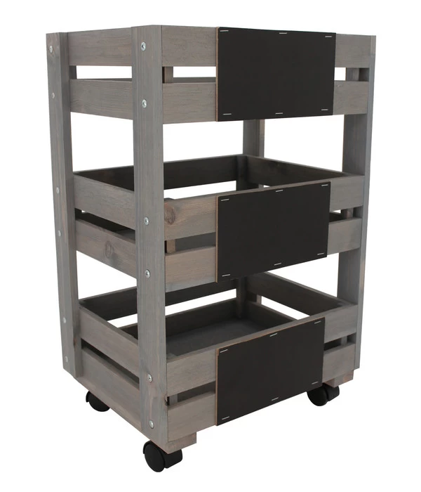 Wenn Sie sich nach mehr Ordnung in Haus oder Garten sehnen, herkömmliche Regale und Kommoden aber Leid sind, dann ist der Holz-Trolley mit 3 Behältern das richtige Möbelstück für Sie. Der dekorative Rollcontainer mit offenen Fächern ist frostbeständig und eignet sich daher sowohl für den Innen- als auch Außenbereich. Die übersichtlichen Behälter mit viel Stauraum sind mit beschreibbaren Tafeln ausgestattet, damit Sie stets auf einen Blick sehen, was Sie wo finden.