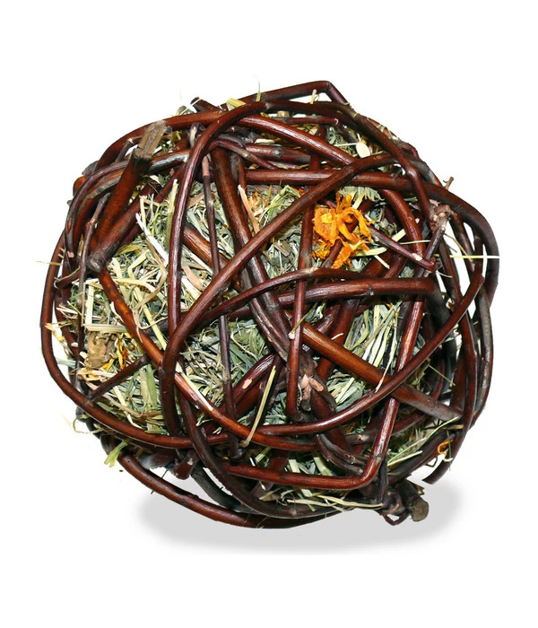 Egal, ob im Mäuse- oder Kaninchenkäfig – der Weiden-Heuball wird Ihren Nagern Spaß machen. Vollständig aus Weidenholz gefertigt und mit Wiesenheu und Ringelblumen gefüllt, bietet der Tierbedarf Knabber- und Spielspaß und kann – nachdem die ersten Äste durchgenagt sind – von kleineren Nagern wunderbar als Behausung genutzt werden.