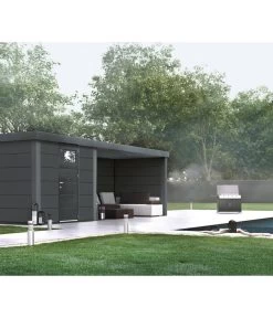 Die Lasita Maja Garage Yarik 540 hat auf der Vorderseite eine große, doppelflügelige Tür, durch die Sie mit einem PKW fahren können, die aber auch für einen Rasentraktor, eine Kehrmaschine und andere sperrige Fahrzeuge geeignet ist. Ein besonderes Ausstattungsdetail ist die Tür an der Seite, die Ihnen die Möglichkeit gibt, das Holzhaus zu betreten, ohne das große Tor öffnen zu müssen. Denn vielleicht haben Sie an der Rückwand Ihre häufig genutzten Gartenwerkzeuge wie Scheren, Hacken, Spaten, Besen usw. ordentlich aufgehängt.