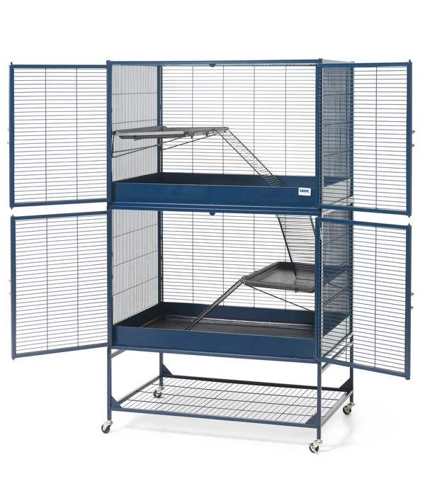 Füttern, streicheln, pflegen, reinigen…alle Ihre Haustiere brauchen Zuwendung und Pflege. Wie schön, dass Ihr SAVIC Nagerheim Suite Royal 95 Double perfekt durchdacht ist! An jeder Etage befinden sich zwei große Türen, durch die Sie mühelos an jede Stelle im Käfig kommen. Die Schutzkanten an den Platten halten Stroh, Streu und Futter im Käfig und damit Ihre Wohnung sauber. Übrigens: Die Plattformen lassen sich zur Reinigung einfach herausnehmen. Das ist wirklich praktisch!