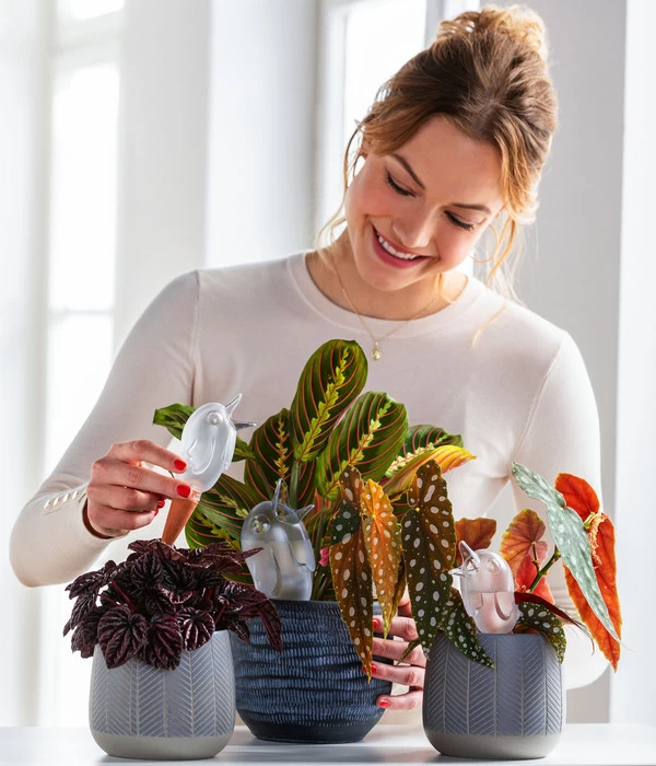 Wenn auch Sie des Öfteren unterwegs sind oder Ihnen das regelmäßige Gießen Ihrer Pflanzen schwerfällt, dann ist der Wasserspeicher Bördy der Firma Scheurich wie geschaffen für Sie. Gerade kurz vor dem Urlaub stellt sich häufig die Frage, wer nun dieses Jahr die Pflanzen in der Wohnung oder auf dem Balkon gießt. Der Wasserspeicher Bördy, der 2011 mit dem Home & Trend Award auf der Frankfurter Herbstmesse ausgezeichnet wurde, ist hier eine willkommene Lösung. Mit diesem bewährten Bewässerungssystem bestimmen Ihre Pflanzen künftig selbst, wie viel Wasser sie benötigen. Der niedliche Vogelkörper aus UV-beständigem Kunststoff dient zur Wasserspeicherung und zur einfachen Befüllung des Systems. Durch den Tonkegel, der in die Erde des Blumentopfes gesteckt wird, kann so das eingefüllte Wasser die Pflanze optimal bewässern. Der sich in der Erde befindende Tonspieß leitet kontinuierlich und zuverlässig das Wasser aus dem Wasserbehälter in die Erde und die umliegenden Wurzeln weiter. Sobald die Erde trockener wird, wird automatisch über den Tonkörper Wasser nachgezogen. Austrocknen oder Übergießen Ihrer Pflanzen gehören so der Vergangenheit an. Mit nur einem Blick auf den verspielten, transparenten Kunststoffkörper sehen Sie, wann nachgegossen werden sollte. Durch den Schnabel des dekorativen Wasserspeichers kann dieser einfach befüllt werden.