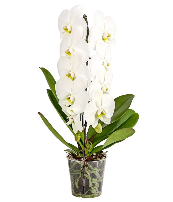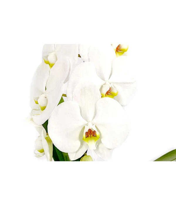 Ist die Rose die Königin unter den Gartenblumen, ist es die Orchidee unter den Zimmerpflanzen. Stolz und liebreizend zugleich präsentieren die Tropenpflanzen ihre prächtigen Blütenkunstwerke über viele Wochen und haben inzwischen eine feste Fangemeinde um sich geschart. Aber wie bei den Adelsgeschlechtern nicht alle gleich sind, so ist es auch bei der königlichen Familie der Orchideen. Schauen Sie sich zum Beispiel die Schmetterlingsorchidee ‘Formidablo‘ an. Ist sie nicht eine besonders vornehme, elegante Erscheinung mit ihren mindestens neun außergewöhnlich großen, strahlend weißen Blüten, die die zierlichen Stängel schmücken und von dem typisch schmalen, grünen Laub eskortiert werden? Begrüßen Sie die majestätische Schmetterlingsorchidee ‘Formidablo‘ in Ihrem Zuhause und geben Sie ihr ein standesgemäßes Plätzchen, an dem diese Tropenschönheit ihren ganzen Charme ausspielen kann. Natürlich ist die Schmetterlingsorchidee ‘Formidablo‘ in der Lage, als Solistin alle Aufmerksamkeit auf sich zu lenken, aber auch in Gesellschaft von Farnen und anderen dekorativen Grünpflanzen setzt sie sich prachtvoll in Szene.