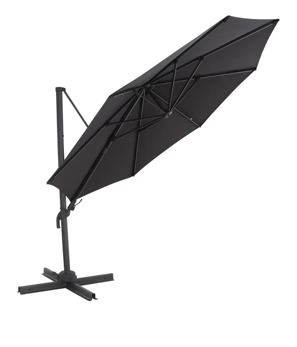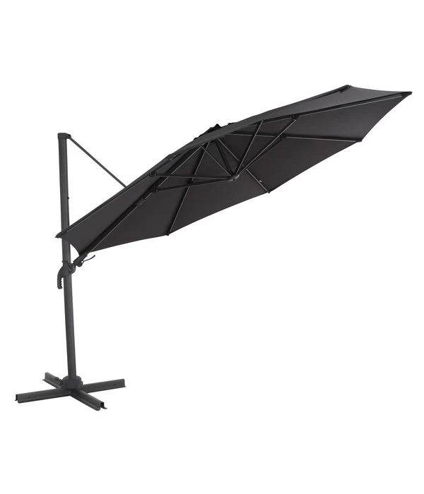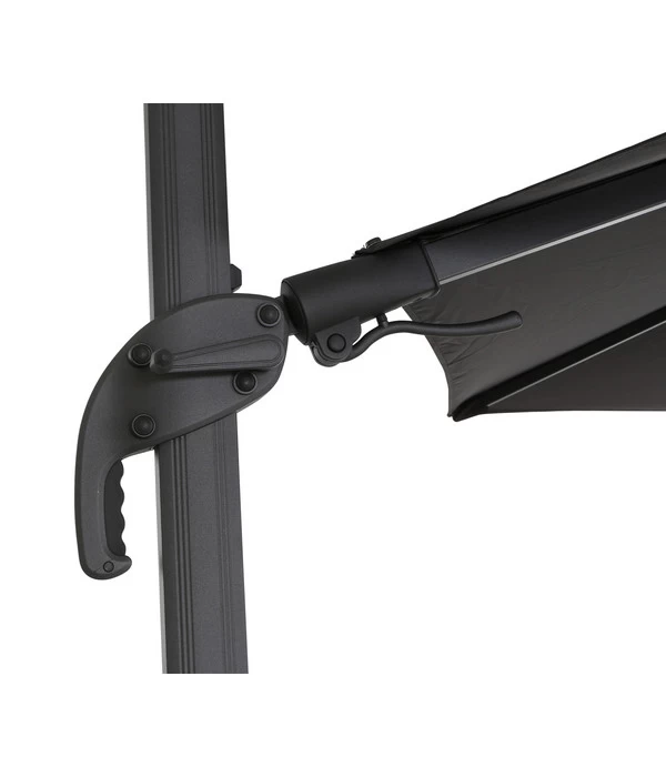 Eine stattliche Schirmfläche in modernem Design kund aus modernen Funktionsmaterialien – mit dem Siena Garden Ampelschirm California N+ haben Sie einen Sonnenschirm der neuesten Generation entdeckt, der Sie und Ihre Lieben vor Hitze, Sonnenstrahlen und grellem Licht schützt und zugleich ein eleganter Hingucker auf der Terrasse oder im Garten ist. Das Beste aber ist natürlich seine Fähigkeit, sich so zu drehen und zu neigen, damit Sie bei jedem Sonnenstand bestmöglichen Schatten haben. Denn Sie können diesen Schirm mit Hilfe eines Fußpedals um 360° drehen, die Schirmfläche entlang des Masts 8-fach neigen und bei Bedarf mit einem Hebel beidseitig auch noch um ca. 90° schwenken. Und das ohne Kraftaufwand und mit wenigen Handbewegungen, denn Sie werden dabei von einem Fußpedal und einer Kurbel unterstützt. Erleben Sie den Sommer gut behütet unter dem Siena Garden Ampelschirm California N+!
