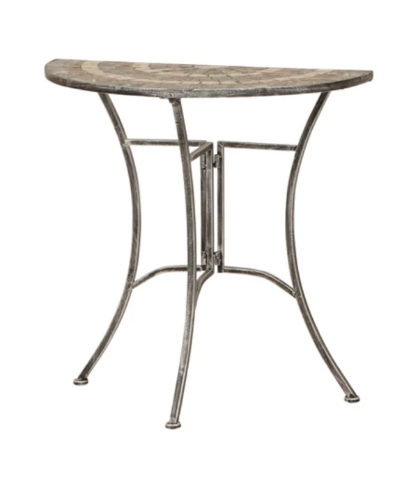Der Siena Garden Anstelltisch Felina kommt wie gerufen, wenn Sie auf der Suche nach einem platzsparenden Möbelstück für Ihren Balkon oder Ihre Terrasse sind. Durch seine halbrunde Platte nimmt er minimalen Raum in Anspruch. Gefertigt ist er aus hochwertigem Stahl, welcher zudem mit einer Pulverbeschichtung versehen wurde. Die Tischplatte besticht durch ein bogenförmiges Mosaikdesign. Im Alltag erweist sich der Siena Garden Anstelltisch Felina außerdem als besonders pflegeleicht. Mit einer Höhe von 71,5 cm und einer Breite von 35,5 cm hat er die idealen Maße für einen flexibel einsetzbaren Beistelltisch.