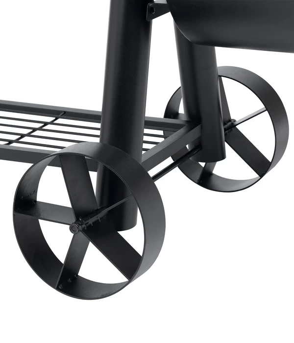 Der robuste, schwere Smoker Indianapolis zeichnet sich durch Komponenten mit extra großer Materialstärke und eine hervorragende Verarbeitungsqualität aus. Zum absoluten Eyecatcher wird dieses Modell von tepro durch den urigen Kaminabzug und die großen Stahlräder. Letztere bieten Ihnen zudem den Vorteil, den Smoker ganz leicht zum gewünschten Einsatzort rollen zu können. Insgesamt sechs emaillierte Guss-Grillroste in der Haupt- und der Seitenbrennkammer, eine abklappbare Ablage mit Besteckhaken sowie ein Flaschenöffner gehören zur sinnvoll durchdachten Ausstattung dieses massiven, hitzefest lackierten Smokers. Holen Sie sich ein Stück vom Wilden Westen in Ihren Garten und bestellen Sie gleich den Massiv Smoker Indianapolis von tepro!