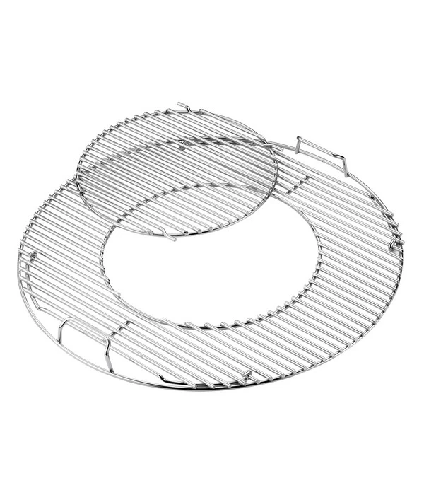 Vor allem wenn draußen die Sonne scheint, gehört das Grillen zu den beliebtesten Möglichkeiten, sich sein Stück Fleisch zuzubereiten. Mit dem Weber Gourmet BBQ System hat der Hersteller aus den USA die Speisemöglichkeiten noch einmal erweitert: Auch Pizza, Kuchen und asiatische Spezialitäten werden hiermit zum Erfolg. Der Weber Gourmet BBQ System – Grillrost mit Einsatz ist dementsprechend ebenfalls alles andere als ein gewöhnliches Zubehörteil. Dank der herausnehmbaren Komponente füllen Sie beispielsweise Grillkohle schneller und einfacher nach, auch das Umwälzen wird so vereinfacht. Zudem lassen sich die Seiten sich hochklappen, an denen die Griffe befestigt sind. Je nach Gericht funktionieren Sie den Weber Gourmet BBQ System – Grillrost mit Einsatz nach eigenen Bedürfnissen um.