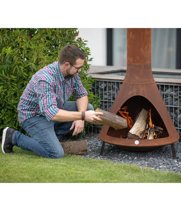 Der Westmann Grillkamin lässt sich mit wenigen Handgriffen zusammenbauen. Seine stabilen Füße garantieren einen sicheren Stand und sorgen so für optimale Sicherheit. Schichten Sie das Brennholz auf dem praktischen Grillrost, das nach dem Gebrauch im Nu gereinigt werden kann. Lästiger Rauch wird vom schlanken Schornstein des Westmann Grillkamins zuverlässig abgeleitet, so dass Sie Ihr offenes Feuer unbeschwert genießen können. Lassen Sie den robusten Ofen einfach draußen stehen, wenn er nicht gebraucht wird, denn der Westmann Grillkamin trotzt jeder Witterung und ist bei Bedarf sofort wieder einsatzbereit.
